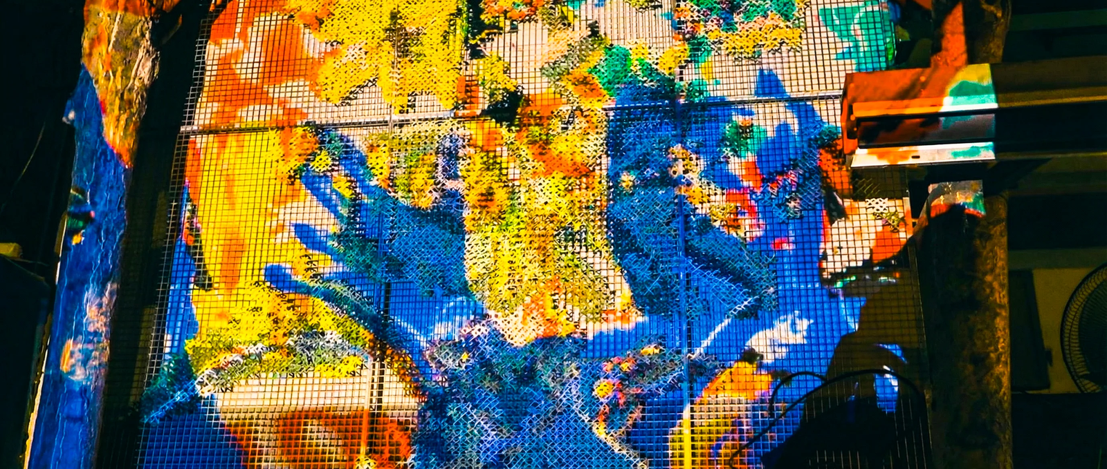 Turning Architecture into an Interactive Canvas. Using a specialized wire-mesh grid, we detached the digital image from the stone surface to create an interactive volumetric display.