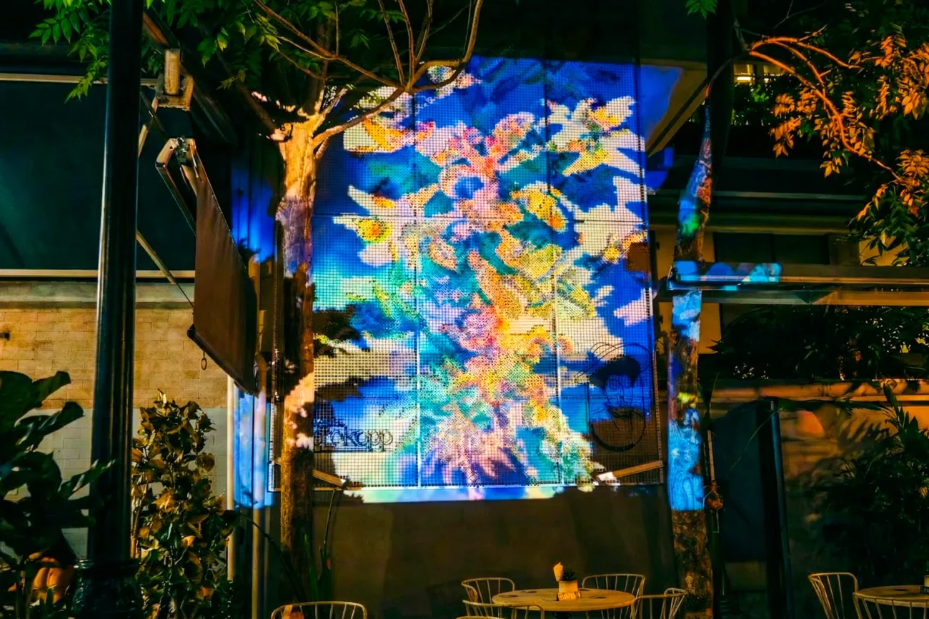 By fusing AI-supported workflows with creative coding, we achieved a unique holographic depth that creates a 3D illusion without glasses, turning static architecture into a living, breathing work of art.