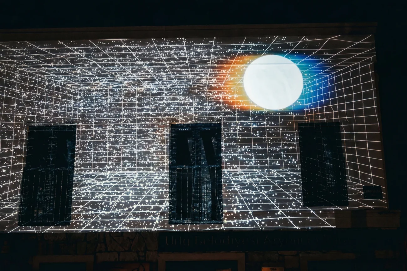 What began as a projection mapping spectacle in Urla has evolved into a global traveling exhibition. After premiering at the Urla Aryom Cultural Center, the work was adapted for the theater stage at 48 Stunden Neukölln (Germany’s largest public art festival) and showcased at the Athens Digital Film Festival.